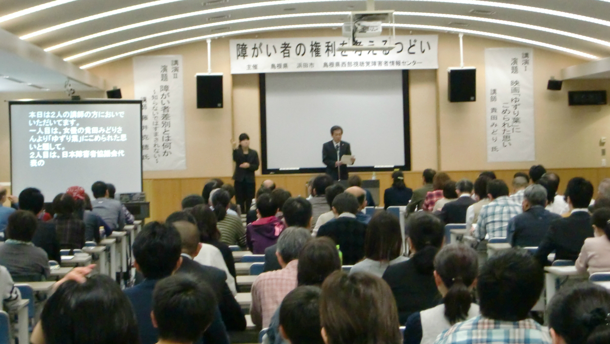 11月15日(日)、いわみーる(浜田市野原町)で「障がい者の権利を考えるつどい」を開催しました。島根県社会福祉事業団の地域貢献活動として、県、浜田市と共に開催したものです。